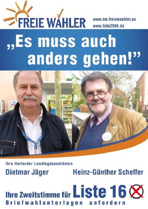 Freie Wähler Nordrhein-Westfalen: Jörn Döring, Semmelweg 95, 32257 Bünde, Döring ist Gastronomieleiter.